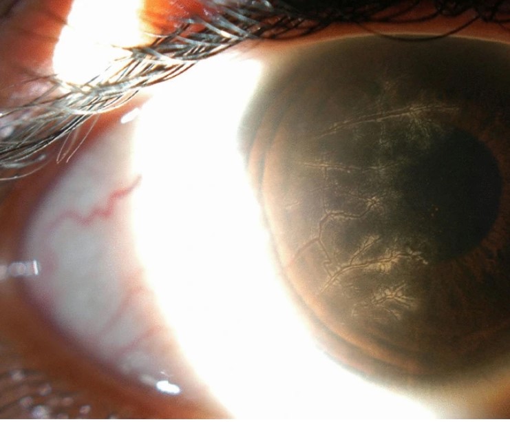 - Lipids leak from abnormal vessels and accumulate in the cornea