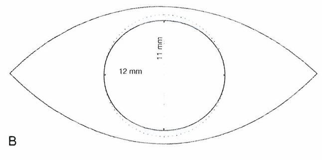 From a front view, the horizontal distance from limbus to limbus (white sclera to white sclera)