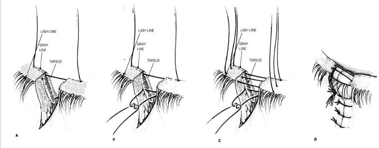 - Follow a multi-step suture technique (alignment, tarsal bite, skin)
